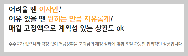 - 저신용자 대출 가능: 신용 점수가 낮아도 대출이 가능합니다.