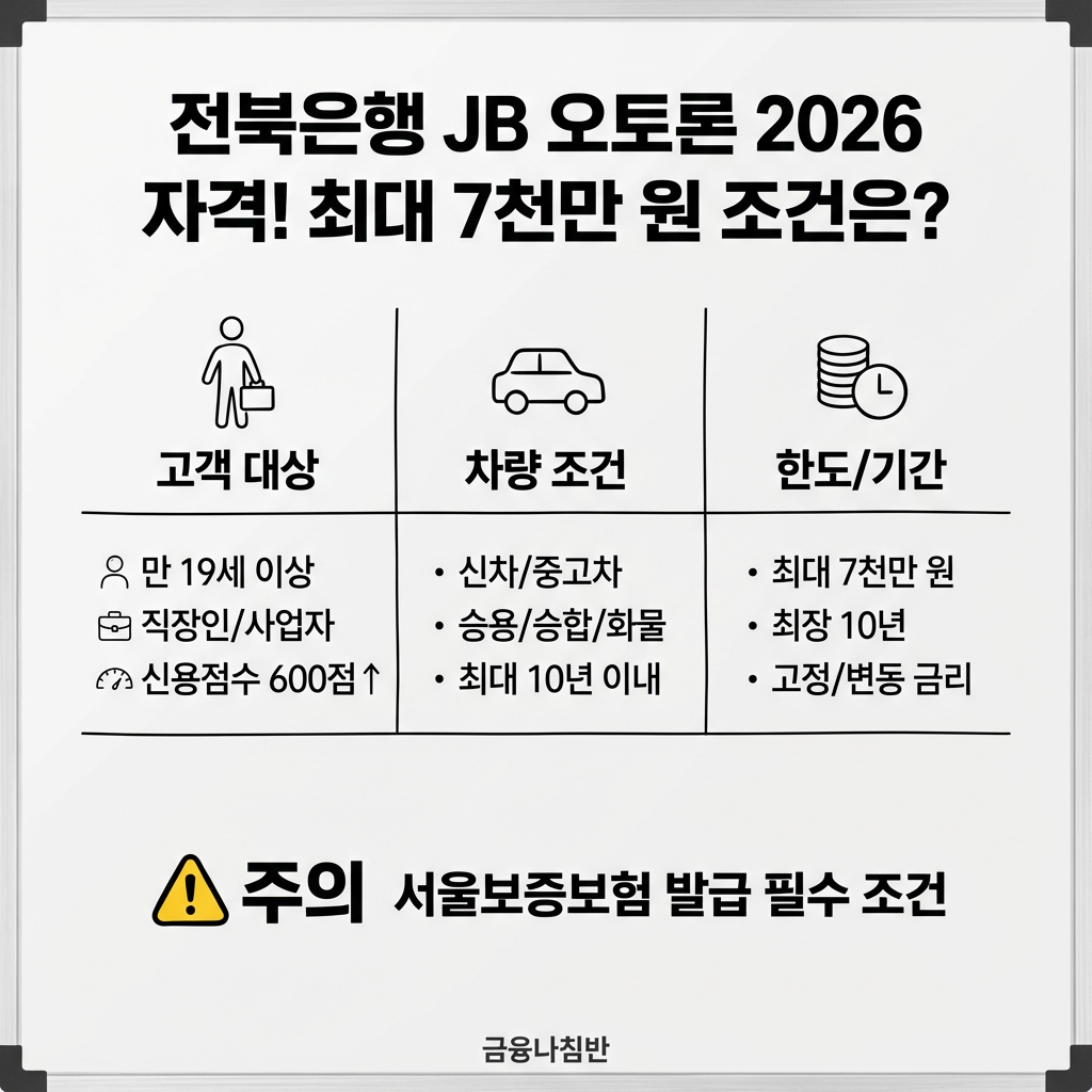 2. 전북은행 JB 오토론 자격 조건 (2026년 기준)
